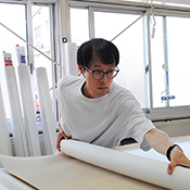 前職は看板屋さんでお仕事をしていました。ハクロマークに入社してからも看板を製作したり、のぼりを縫製したりしています。縫製は初めての仕事なので、日々どうしたら綺麗に縫えるのか先輩達に相談しながらお仕事をしています。