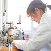 縫製の楽しさを知ったのが数年前で、今はお客様のために作る事がとても楽しいです。縫製部の頼もしい先輩方に支えてもらいながら日々勉強です。良いものをお届けできるよう頑張りますのでよろしくお願いします。
